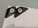 Dry top polyethylene tarp, White, 12’ x 16’. Actual dimensions. 10 mils. Reinforced corner grommets. Grommet spacing 18 in. UV resistant. This is a very strong plastic tarp used to cover boats, decks, picnic tables, or outdoor equipment around the home or business. The tightly woven 10 mils construction is heavier and stronger than the usual 7 mils blue, green or brown plastic tarps sold in hardware stores. Used only once. Like new.