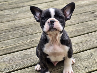 AKC Boston Terrier puppy. Buster is a brindle and white puppy. He has been well socialized. He responds to his name, loves to play and is up to date on his shots. 207-677-2081