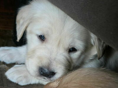 We have puppies! Milk & Honey Goldens is the home of purebred Golden Retrievers. 2 males and 2 females available. Ready to go April 18th! Interested in reserving a pup?