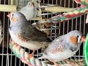 Breeding pair of Fancy Zebra Finches & 3 two month old babies @ $25ea: Mom is a Black Cheek and dad is Fancy White. They throw white females and gray males (typically) $50 for the pair but if interested in the flight cage w/stand also, then $100 for the whole set-up (Note: Cage is not for sale without the birds) Text is best or call for more info. Price is firm/cash only. Sorry, no deliveries. If ad is up, they are still available.