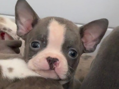 AKC Boston Terrier puppy. Buster is a brindle and white puppy. He has been well socialized. He responds to his name, loves to play and is up to date on his shots. 207-677-2081